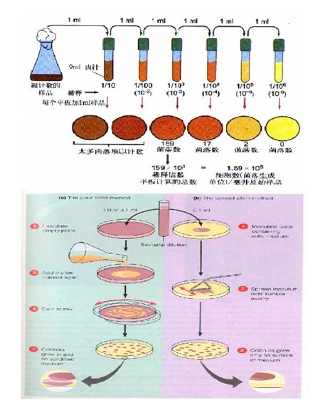 2.2 傳統(tǒng)菌落技術(shù)法 菌落總數(shù)的測定,一般將被檢樣品制成幾個不同的10倍遞增稀釋液,然后從每個稀釋液中分別取出1mL置于滅菌平皿中與營養(yǎng)瓊脂培養(yǎng)基混合,在一定溫度下,培養(yǎng)一定時間后(一般為48小時),記錄每個平皿中形成的菌落數(shù)量,依據(jù)稀釋倍數(shù),計算出每克(或每ml)原始樣品中所含細菌菌落總數(shù)。(以下圖片均來自于互聯(lián)網(wǎng))